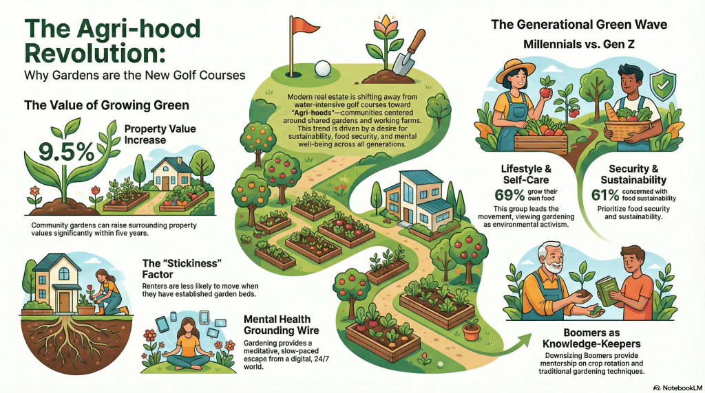 When an apartment complex says, “Let’s have a green space where tenants can grow their own food,” they aren’t just planting seeds; they’re planting a community. This is the heart of the “Agri-hood” movement, a trend that is rapidly seeing modern buyers and renters trade the manicured fairways of a golf course for the fertile rows of a community garden.